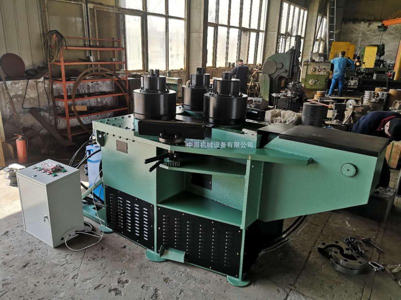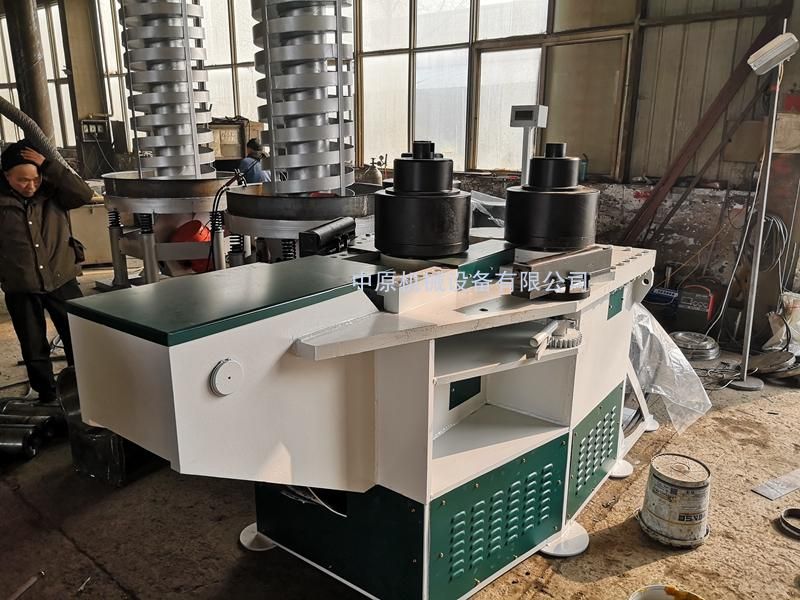 床身為一封閉式框架結(jié)構(gòu),驅(qū)動兩輥位置固定,可以進(jìn)行正反方向旋轉(zhuǎn),油缸推進(jìn)??汕昂笠苿?,兩固定模的轉(zhuǎn)動為液壓傳動、由液壓馬達(dá)驅(qū)動。推進(jìn)模由液壓油缸的伸縮來完成。傳動平穩(wěn)、安全可靠;在固定模的兩側(cè)設(shè)有托輥裝置,托輥既可以做升降運(yùn)動,也可以做旋轉(zhuǎn)運(yùn)動。配合模具與導(dǎo)向輪同時作用有利于控制型材的卷制精度。